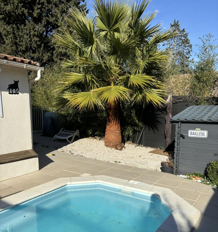 Le client a retrouvé un espace extérieur propre, harmonieux, sans contrainte ni mauvaise surprise pendant ou après les travaux. Un palmier cerclé avec soin, une piscine préservée, un chantier bouclé dans les règles. Si vous avez un palmier à entretenir à proximité d’un bassin ou dans un espace contraint, nous pouvons vous proposer la même approche — personnalisée, sécurisée, respectueuse du végétal. Pour tout projet autour de Vendargues, Baillargues, Teyran ou Montpellier, contactez Eco Sig’Nature pour un premier échange sans engagement.